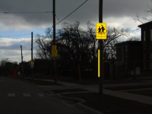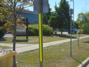 Suitable to identify school crossings especially mid-intersection or when no crossing guard is present. Fits all posts and provides a vertical grounding effect for drivers.